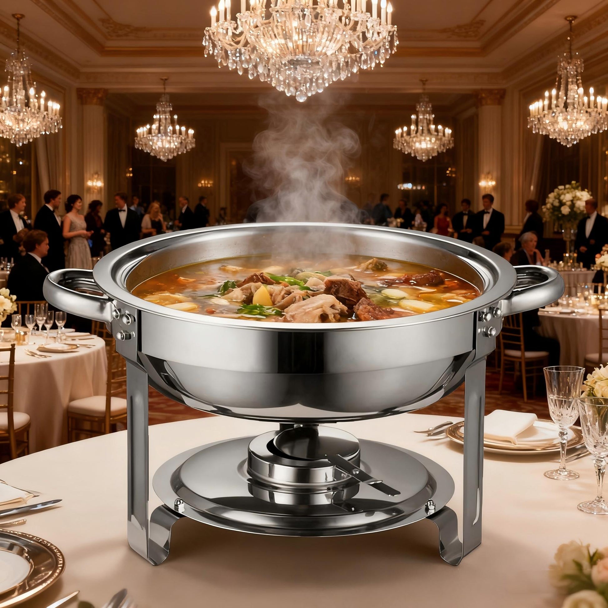 Alcohol-Heating Buffet Stove CDH-39, 5L Round Stainless Steel Set Silver Color, Chafing Dish Food Warmer (Without Alcohol)