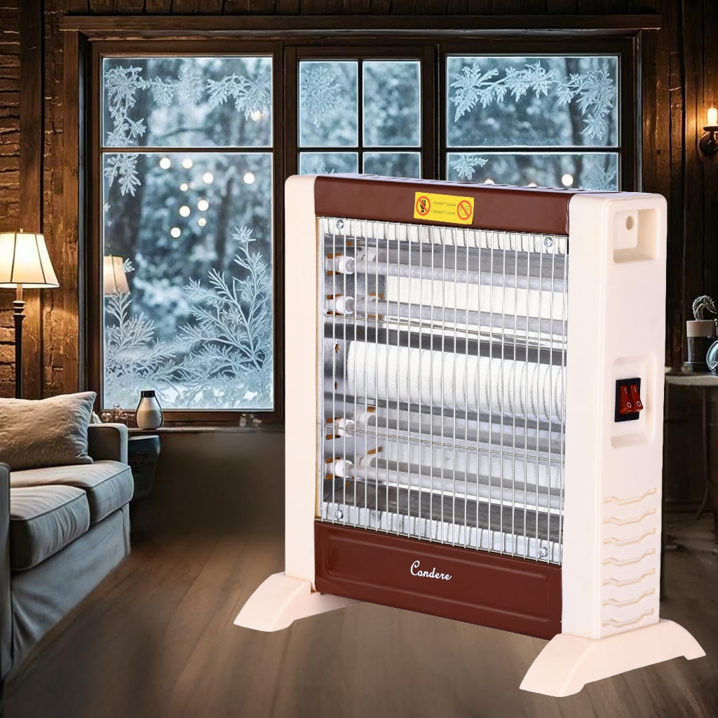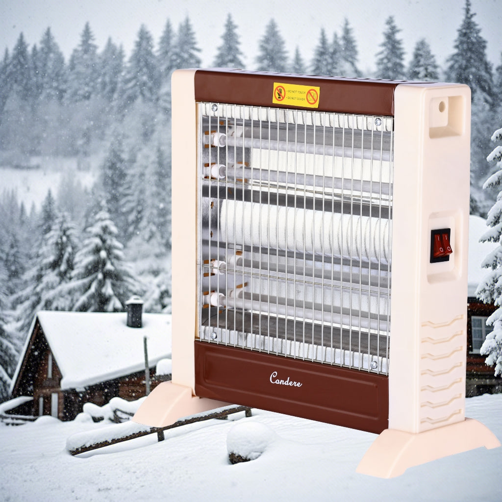 Stay warm and cozy during chilly days with the CONDERE ZR-2011 Quartz Electric Heater, a compact yet powerful solution for all your indoor heating needs. Designed with 4 durable quartz tubes, this space heater delivers instant, radiant heat that’s ideal for use in bedrooms, offices, and small rooms. This electric heater features two adjustable heating levels—600W and 1200W—making it suitable for light warmth or stronger heat, depending on your preference. Built-in tip-over protection ensures safe use, automatically switching off the unit if it’s accidentally knocked over—perfect for homes with children or pets. Whether you need a small space heater for office, a portable heater for bedroom, or a mini heater for your desk, the ZR-2011 offers flexibility, safety, and comfort. Its compact size and built-in handle make it easy to move and store, and the included manual helps you get started quickly. An excellent choice for those looking for small heaters for indoor use, room heaters for office, or portable space heaters, the CONDERE ZR-2011 is your go-to heating solution for comfort in any room.