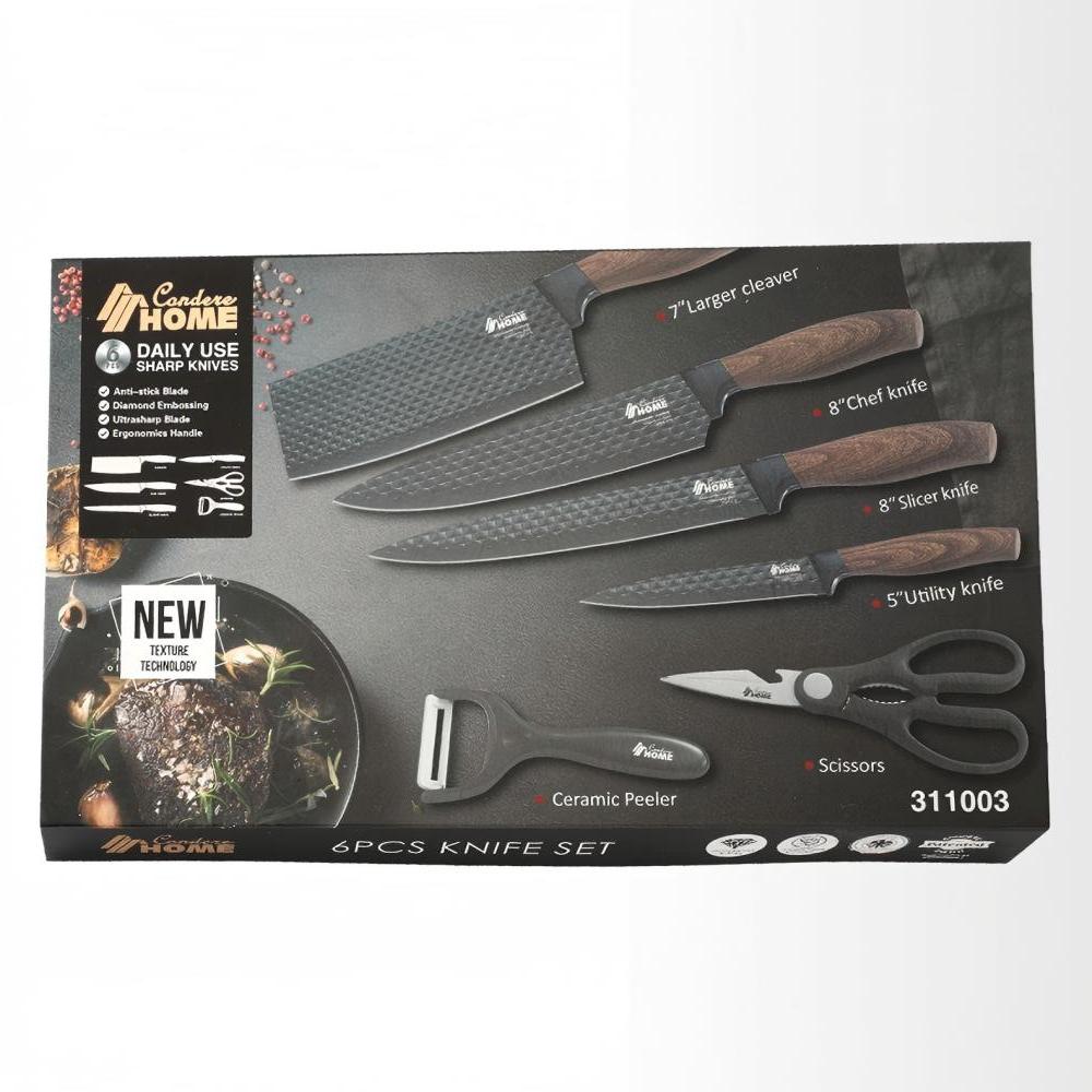 CONDERE HOME 6 PCS Kitchen Knife Set with Free Yeast Larger Cleaver, Chef Knife, Slicer, Utility Knife, Peeler & Scissors 3CR13 Stainless Steel Colour Box