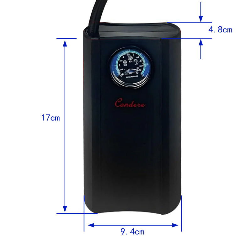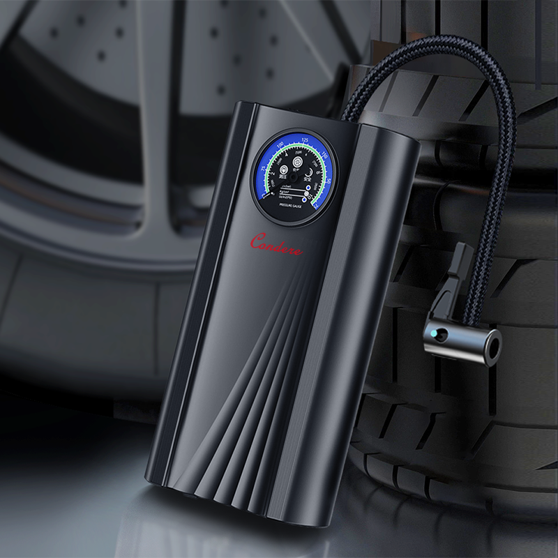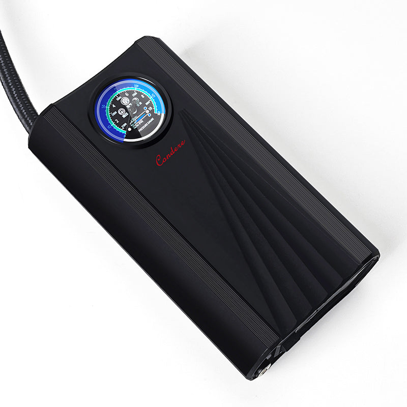 - Portable and Compact Design: The CONDERE CQB-002 inflating pump features a stylish and portable design, perfect for keeping in your car. This portable tire inflator is compact enough to carry wherever you go, ensuring you're always prepared for emergencies.