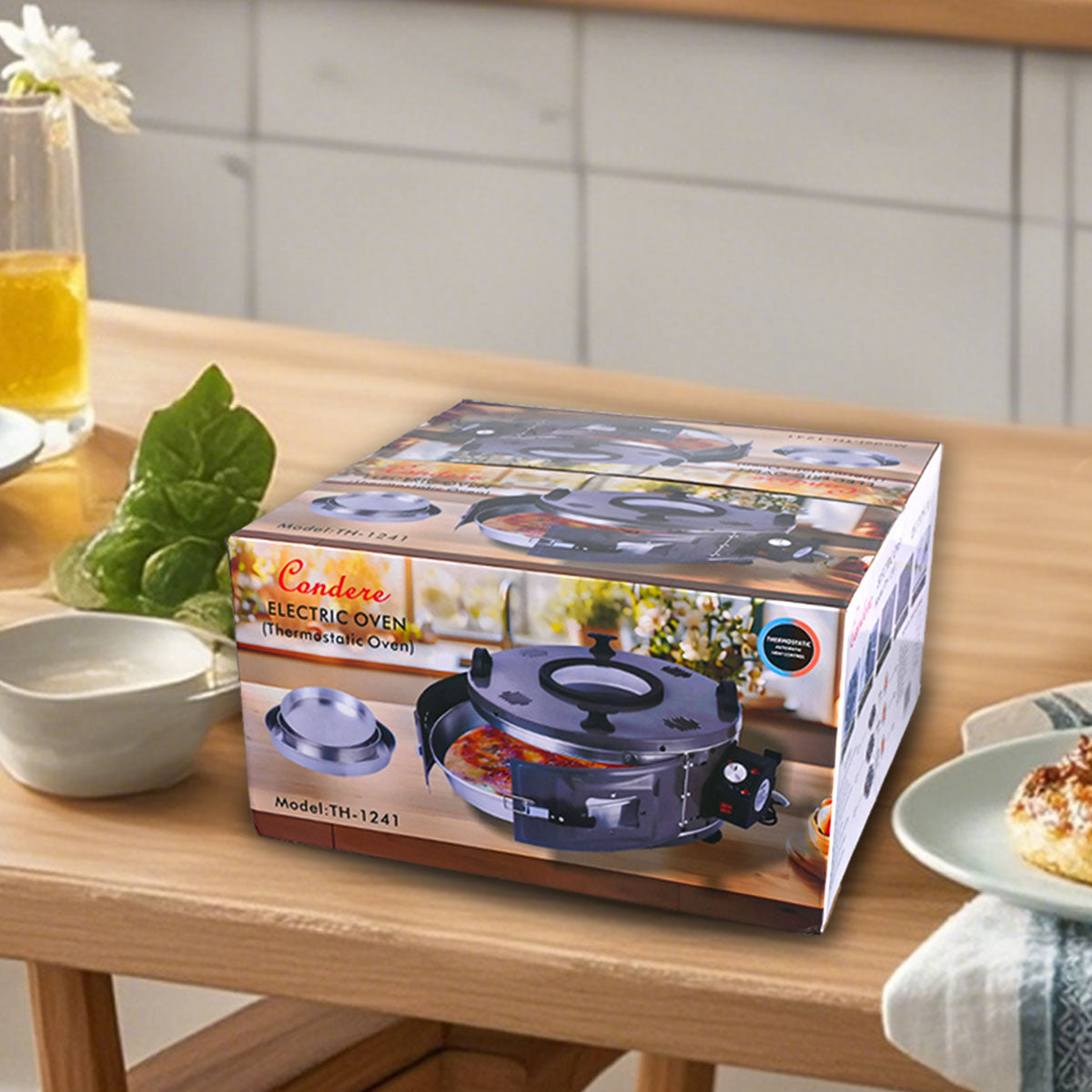 The CONDERE TH-1241 Electric Oven is a 1500W high-performance roaster oven with adjustable heat control, making it a versatile choice for all your cooking needs. Whether you're roasting a turkey, baking bread, or preparing large family meals, this electric roaster oven is designed to deliver exceptional results. Featuring an easy-to-clean aluminium interior and three deep trays, this oven ensures hassle-free maintenance. The large heat-resistant window allows you to monitor your cooking, while the integrated cable storage and reliable locking system add convenience and safety. With a powerful 220-240V, 50-60Hz system, the oven delivers consistent heating performance, perfect for roasting pans with lids, turkey roaster electric, and electric roaster applications. Its compact yet spacious design (60.7x53.5x31.5 cm) fits comfortably in most kitchens without compromising on capacity. Each package includes one electric stove and an instruction manual, securely packed in a color box . Backed by a 12-month warranty, the CONDERE TH-1241 Electric Oven is a reliable and efficient choice for all-purpose cooking.